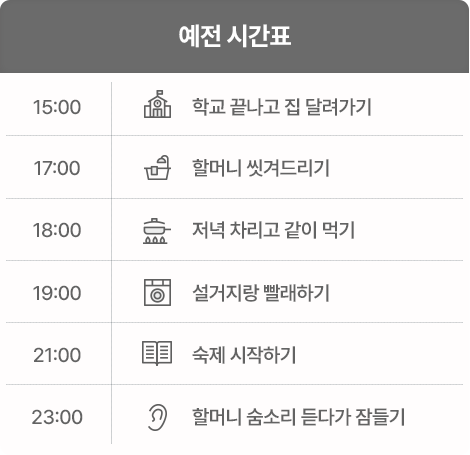 수아는 할머니 곁에서 숙제를 폅니다.