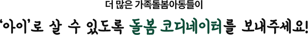 돌봄 코디네이터가 찾아가는 순간, 아이의 하루는 달라집니다.